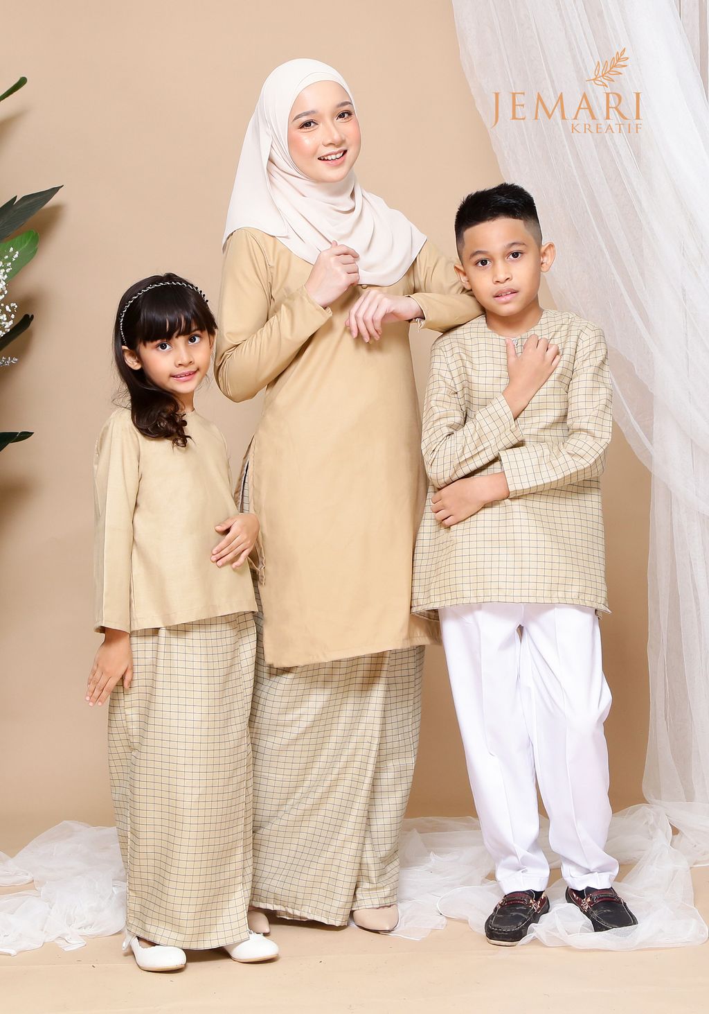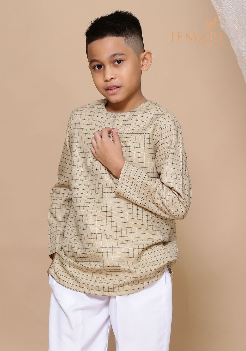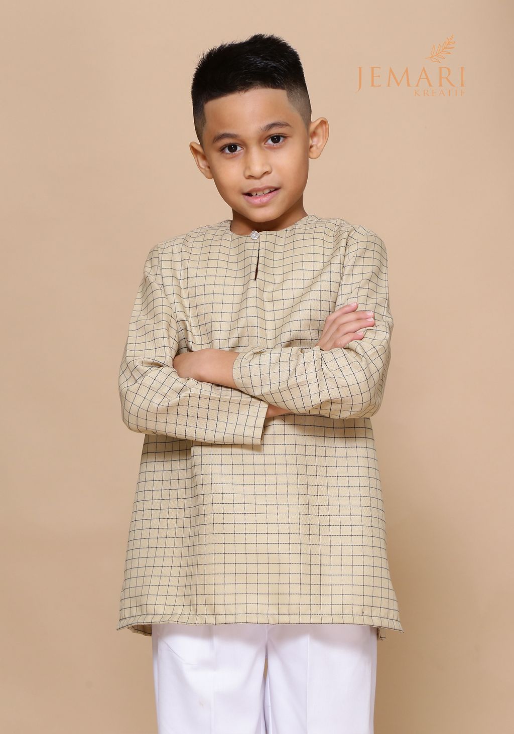 Combo Kurta Segak - Checkered Khaki (Father & Son)